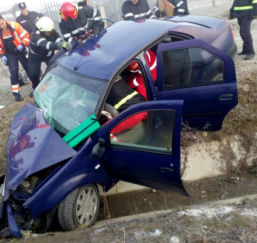 In accident a fost implicat un autovehicul iar in urma impactului au rezultat doua victime (un barbat si o femeie). Una dintre victime(pasagerul- barbat) era incarcerata dar constienta.