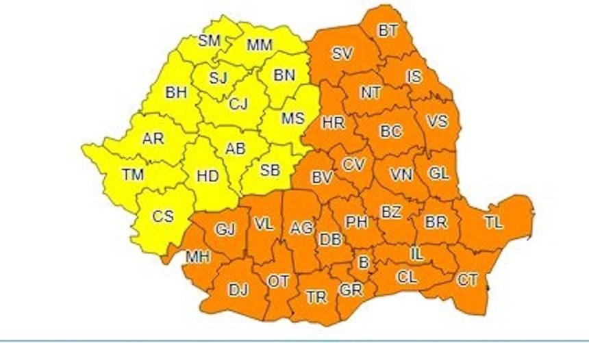 Administrația Națională de Meteorologie a emis un cod portocaliu și unul galben de temperaturi foarte scăzute. Avertizarea viezează toată țara, zonele de nord-est, est, sud-est și centrale fiind afectate de codul portocaliu, iar restul de codul galben.
