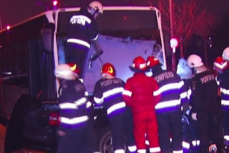 Un bărbat a fost proiectat prin parbriz din autoturismul pe care îl conducea, după ce mașina a intrat într-un autocamion.