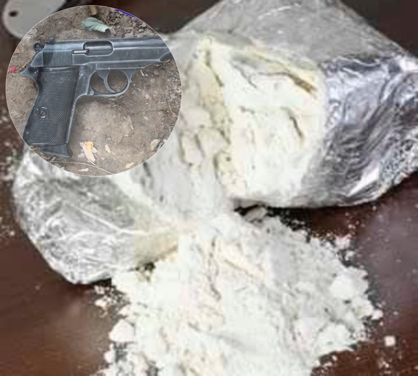 La percheziția din localitatea Fundeni, polițiștii au descoperit si ridicat pentru cercetări: aproximativ 500 de grame de heroină, aproximativ 200 de grame de cocaină, un pistol, cu proiectil de cauciuc (neletal), supus autorizării, care figureaza ca fiind furat, aproximativ 30 kg. de tutun vrac, tuburi de țigarete, filtre, ambalaje, etichete si alte materiale folosite la confecționarea ilicită a țigaretelor, 10.300 de euro, 1.560 de lei și 200 de coroane daneze.