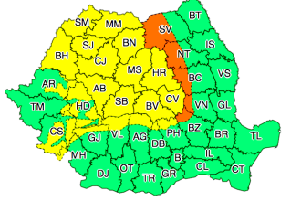 Totodată, în intervalul 14 decembrie, ora 23:00 – 16 decembrie, ora 18:00, în Banat, cea mai mare parte a Crişanei, vestul şi sudul Transilvaniei, vestul şi nordul Olteniei, jumătatea de nord a Munteniei, precum şi în zona Carpaţilor Meridionali, Occidentali şi de Curbură va fi Cod galben de precipitaţii mai ales sub formă de ninsoare şi se va depune strat consistent de zăpadă. Local, se vor cumula 25 – 30 l/mp şi, izolat, 40 – 50 l/mp. Vântul va avea intensificări la munte, cu rafale de peste 60 km/h, dar şi în regiunile sudice şi sud-vestice, unde va atinge în general de 45 – 50 km/h.