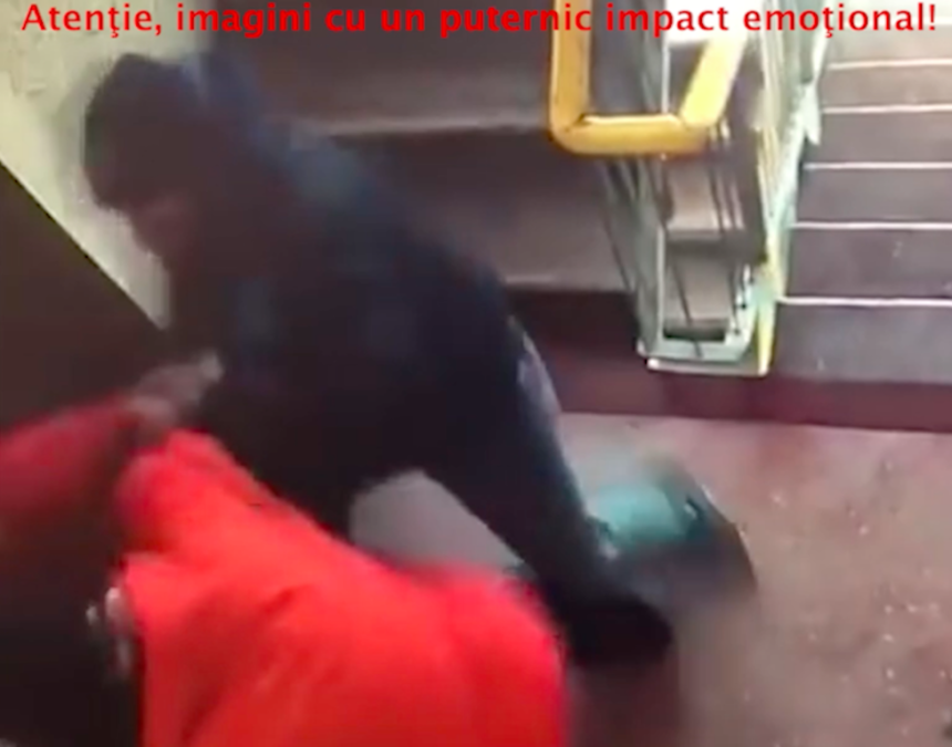 Imagini șocante au fost surprinse în scara unui bloc din Galaţi. Un locatar a fost bătut cu sălbăticie şi jefuit de către un individ.