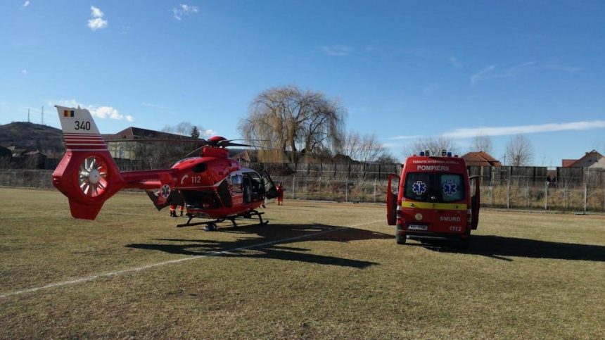 Băieţelul, a cărui stare este gravă, va fi transportat cu un elicopter SMURD la o clinică din Târgu Mureş.