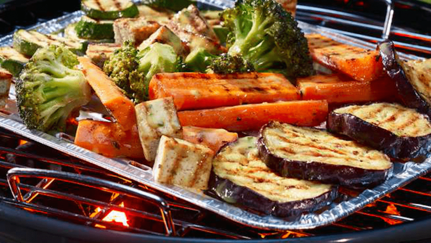 3.Legumele se prepară pe platoul pentru grătar și se condimentează cu oțet, sare și piper. Salata de legume la grătar se așează pe farfurii și se servește.