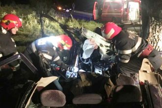 Patru persoane, din care una e o femeie însărcinată, au fost rănite într-un accident produs, joi seara, pe raza localităţii Meteş, între un autoturism şi un camion care transporta butelii, recipientele fiind goale.