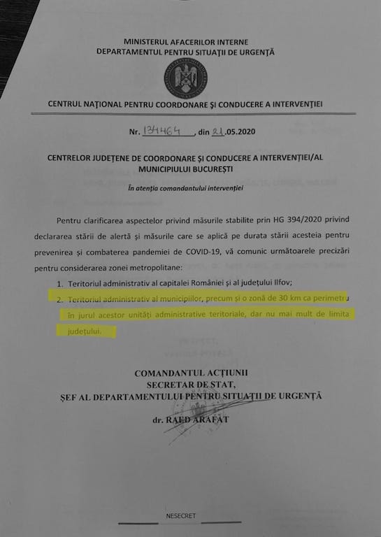 Departamentul de Situații de Urgență a emis adresa prin care se consideră „zonă metropolitană” teritoriul administrativ al municipiilor, precum si o zonă de 30 de km în jurul lor.