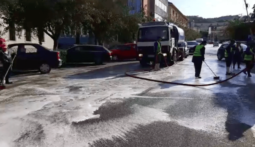 Străzile din Petroșani, spălate cu apă și detergent