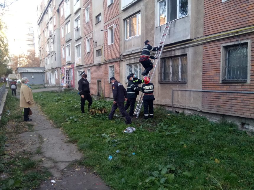 Incidentul a avut loc astăzi în Petroșani, unde o bătrână a rămas blocată în balconul locuinței sale.