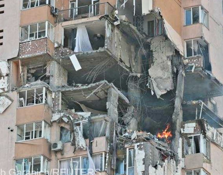 Atacul asupra unei clădiri de locuinţe a fost confirmat de Serviciul de Urgenţă al Statului ucrainean, într-un comunicat.
