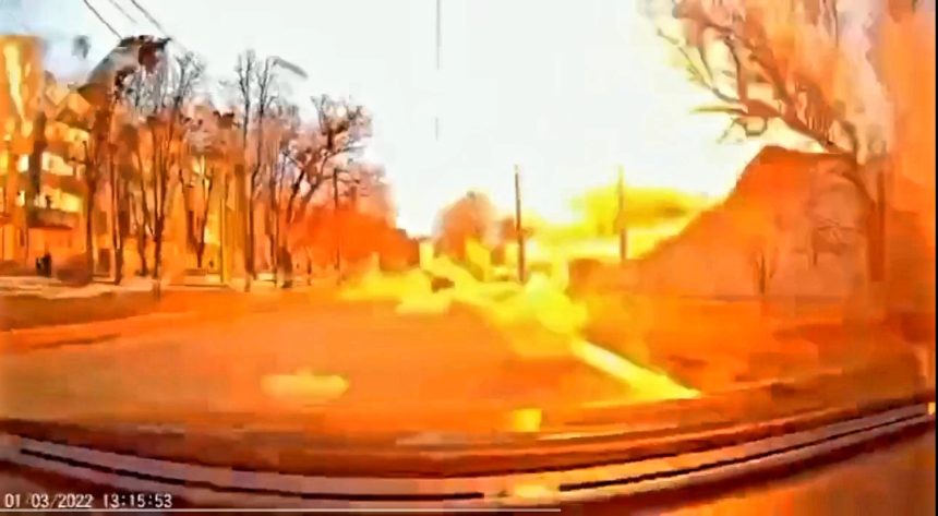 UCRAINA: Explozie puternică într-o zonă rezidențială din Harkov, surprinsă pe camera de bord a unei mașini care trecea prin zonă!