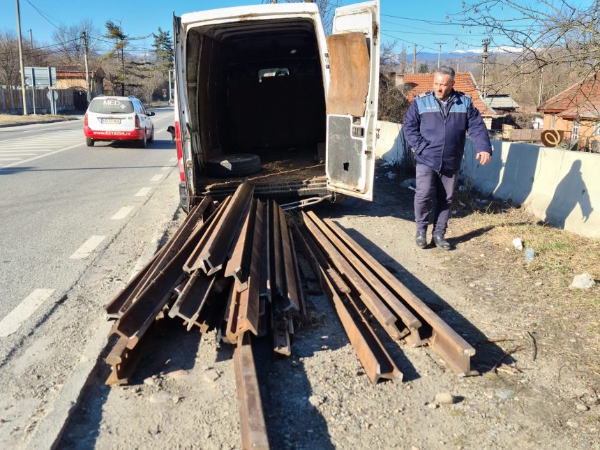 Patru suspecți de furt calificat și un complice, care-i ajuta să transporte fierul vechi furat de pe fosta linie ferată industrială dintre Hațeg și Subcetate, au fost prinși în flagrant de către polițiștii TF Petroșani, în zona Livezeni. Cei cinci, toți din municipiul Vulcan, furaseră mai multe șine de cale ferată și voiau să le transporte la un centru de fier vechi. Deși reușiseră să vină cu fierul furat din Hațeg până la Petroșani, autoutilitara cu care-l transportau s-a defectat, astfel fiind prinși. Cei patru hoți au fost reținuți de polițiștii TF din Petroșani și duși în fața procurorilor, la fel și o femeie care conducea dubița. Potrivit prim-procurorului Parchetului de pe lângă Judecătoria Hațeg, cei patru suspecți sunt cercetați sub control judiciar pentru infracțiunea de furt calificat iar femeia este suspectată de complicitate la aceeași infracțiune.