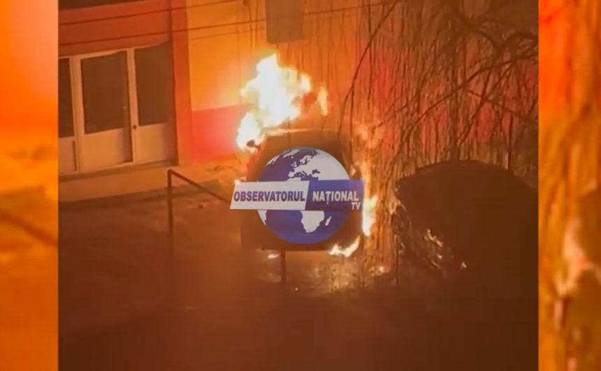 Atac mafiot în Petrila. Mașină incendiată chiar în parcarea unui bloc!