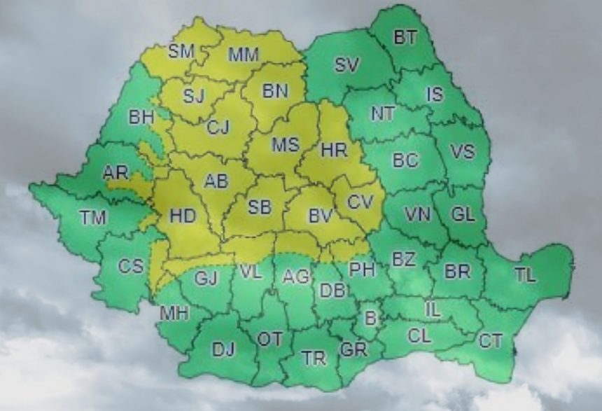 ATENȚIONARE METEOROLOGICĂ COD GALBEN: Instabilitate atmosferică temporar accentuată