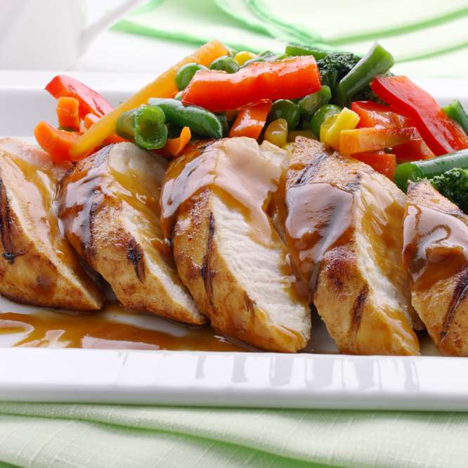 5.Se servește pieptul de curcan cu garnitura de legume.