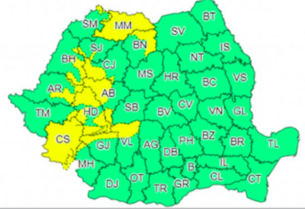 Avertizarea meteo este valabilă începând din această seară, de la ora 18 şi până marţi seara.