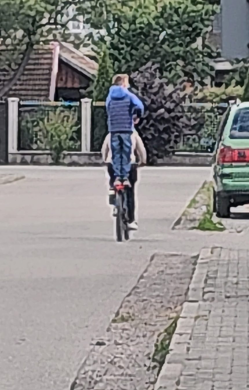 În această situație alarmantă, copilul a fost observat stând în picioare pe portbagajul bicicletei, în timp ce unul dintre părinți filma cu telefonul mobil, ignorând complet riscurile evidente. Aceasta este a doua oară în aceeași zi când copilul a fost expus la astfel de pericole, semnalând un tipar îngrijorător de comportament parental neglijent.