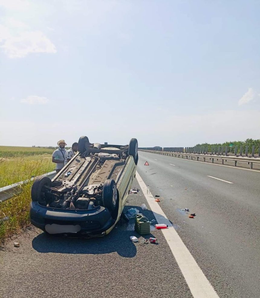 AUTOTURISM RĂSTURNAT PE AUTOSTRADA A1 ÎN ZONA PECICA