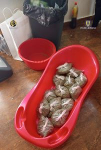 În urma percheziției domiciliare, autoritățile au identificat și ridicat peste 2 kilograme de substanță vegetală impregnată cu MDMB-4en-PINACA și 5F-ADB (substanță psihoactivă), o cantitate de canabinoid sintetic destinat preparării drogului de risc, flacoane cu acetonă, cutii goale de ceai, obiecte cu urme de substanță, un cântar de mare precizie, plicuri autosigilante, sume de bani în lei și euro, unități de stocare a datelor și alte mijloace de probă.