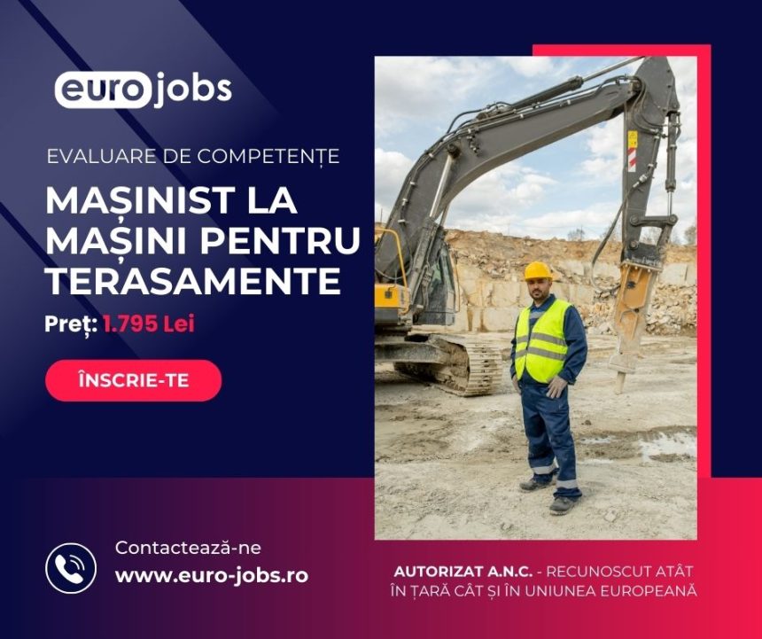 💡Euro Jobs îți pune la dispoziție Evaluarea de competențe Mașinist la mașini pentru terasamente care te ajută să dobândești statutul de calificat în doar 3 zile.