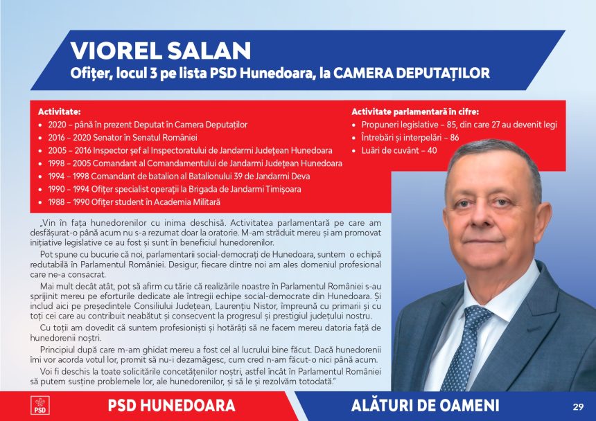 VIOREL SALAN Ofițer, locul 3 pe lista PSD Hunedoara, la CAMERA DEPUTAȚILOR