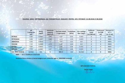 ApaServ Valea Jiului a dat publicității valorile parametrilor analizați pentru apa potabilă, conform măsurătorilor efectuate în perioada 13 – 17…