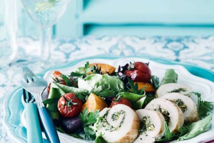 Ingrediente: (4 porții) 35 g fistic 2 linguri pătrunjel tocat 2 linguri salvie tocată 2 lingurițe coajă de lămâie rasă…