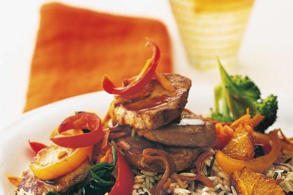 Ingrediente (4 porții) 340 g amestec de orez basmati și orez sălbatic 600 ml apă clocotită 2 portocale 1 lingură ulei…