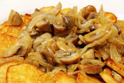 Ingrediente (2 porții) 400 g ciuperci 2 cepe 4 cartofi ulei sare piper Preparare 1-Se curăță și se spală legumele.…