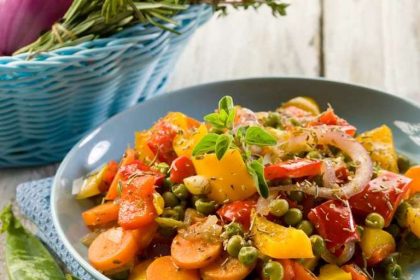 Ingrediente (2 porții) 100 ml supă de legume 100 g boabe mazăre 2 ardei grași 1 ceapă 2 morcovi 3…