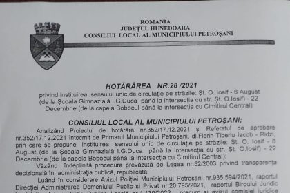 Începând din data de 3 aprilie se instituie sensul unic de circulație pe străzile Șt. O. Iosif – 6 August…