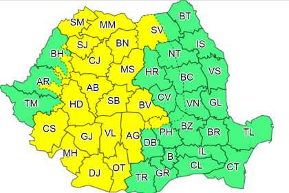 Douăzeci şi şapte de judeţe sunt, duminică, sub cod galben de instabilitate atmosferică accentuată, fiind anunţate cantităţi însemnate de precipitaţii…