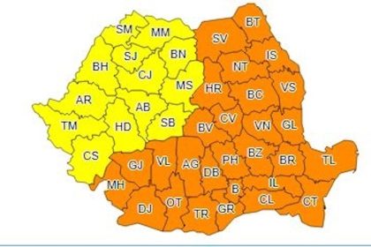 Paisprezece judeţe se vor afla, de miercuri, de la ora 11.00, până joi, la aceeaşi oră, sub atenţionare cod galben…
