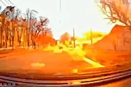 O explozie puternică dintr-o zonă rezidenţială a oraşului Harkov a fost surprinsă de camera de bord a unei maşini care…