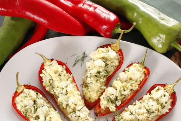 Ingrediente: (8 bucăți) 4 ardei capia mari 100 g orez 100 g brânză feta 100 g brânză dulce 100 g…