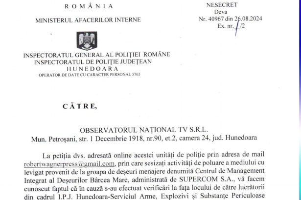 Inspectoratul de Poliție Județean Hunedoara a investigat recent sesizările privind poluarea mediului cu levigat provenit de la groapa de deșeuri…