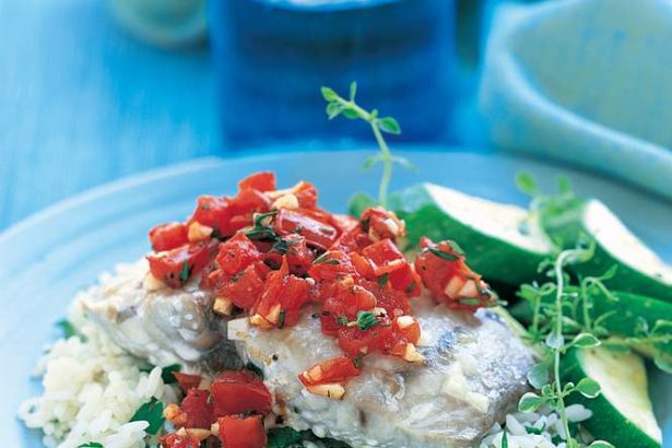 Ingrediente: (4 porții) 600 g file de macrou 1/4 linguriță sare 3 roșii coapte 2 lingurițe usturoi, mărunțit 1 lingură…